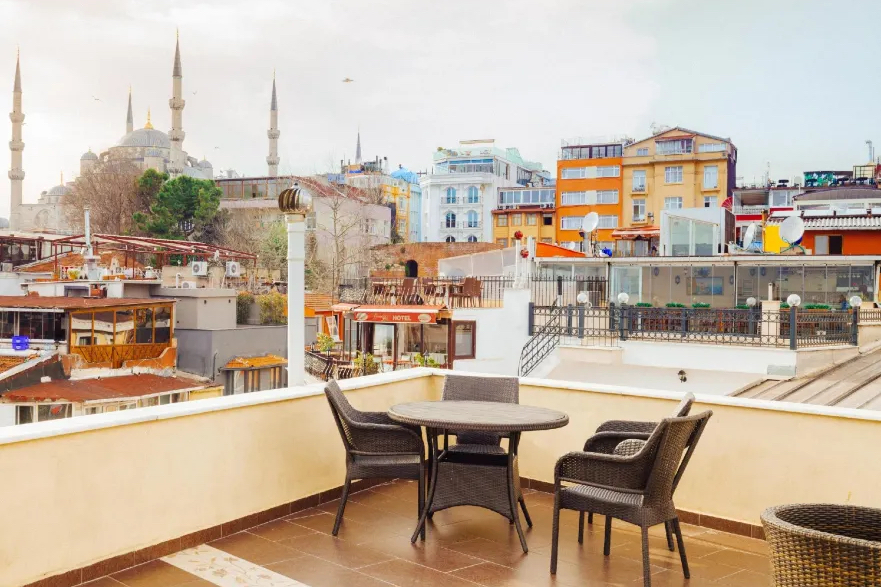 ✨飯店特色:公共大陽台與聖索菲亞清真寺對望,擁有絕佳的賞景和拍照位置,飯店風格充滿異國情調,房間簡約舒適,房型眾多從標準房、高級房、三人房到家庭一室套房皆有。有免費Wifi並供應早餐,附設停車場、咖啡室,可寄存行李且提供付費機場接駁服務。
