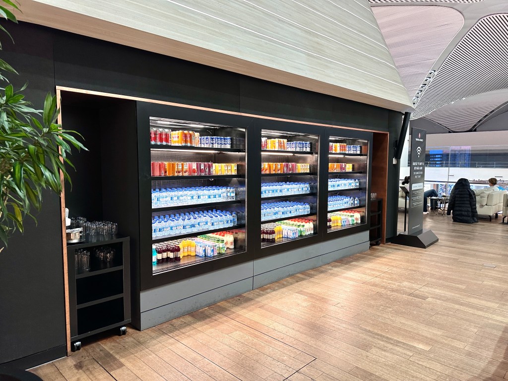 食物跟飲料都可以隨意取用,可惜當時已是土耳其凌晨,我平常的睡覺時間,睡意遠大於食慾,拿了一瓶水跟果汁作罷,待會機上還有商務套餐,所以這次沒嘗試貴賓室裡的美食。