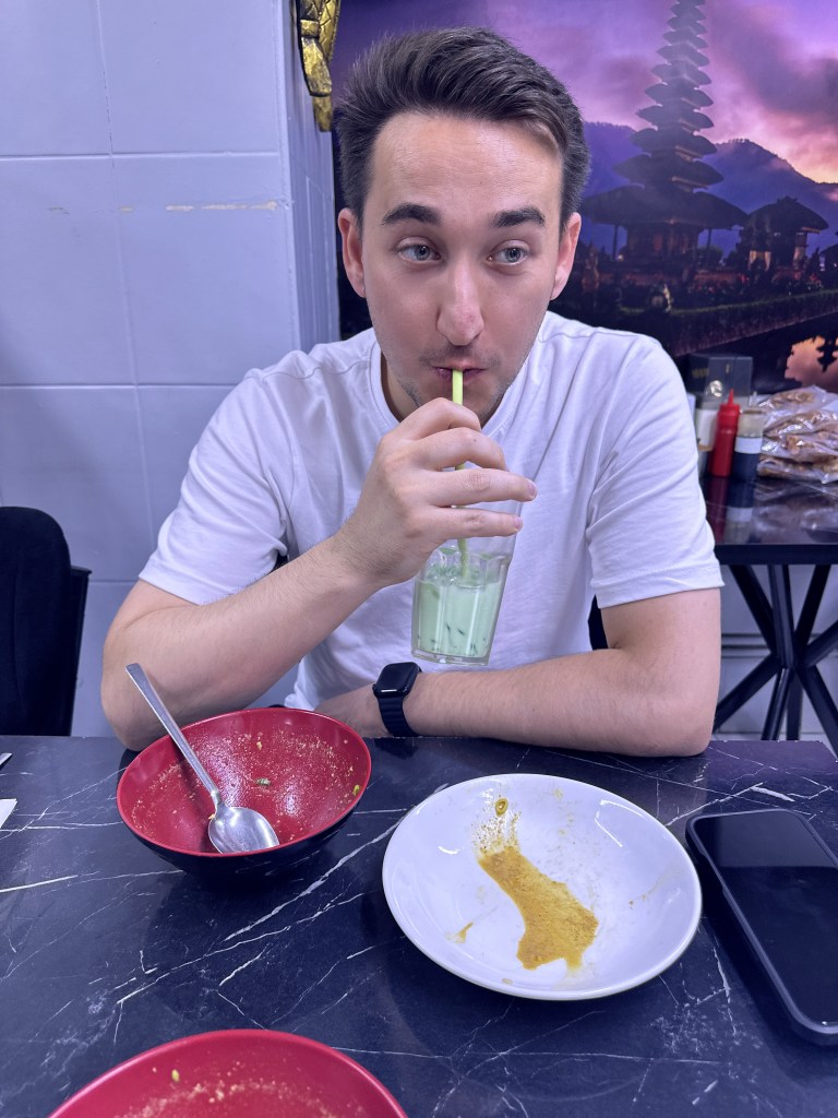 ✨餐點介紹:冰涼的印尼甜點,由椰奶、黑糖漿和綠色米漿條組成,口感滑嫩、甜而不膩,是炎熱天氣裡最受歡迎的消暑聖品。