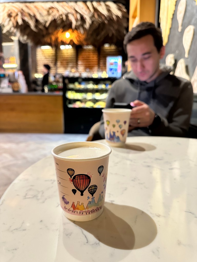 不過他們的紙杯上有熱氣球和奇岩的彩色設計,讓人很想帶回家做紀念~看著可愛的紙杯,喝著杯中的熱飲,發現他們的Chai Tea Latte也太滑順,算是在土耳其大小咖啡館喝過最好喝的一杯!